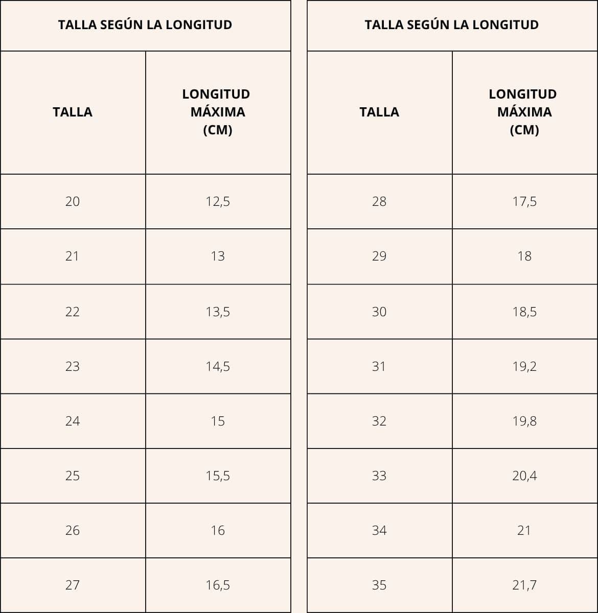 Por ejemplo, el pie izquierdo de Violette mide 16,3 cm de largo y su pie derecho mide 16,2 cm de largo. Si nos remitimos a la tabla, estamos en una longitud correspondiente a una 27. Nuestros modelos infantiles tienen un fit generoso, no es necesario tener en cuenta el perímetro. Solo queda seguir los consejos de cada ficha de producto para determinar si coger la talla indicada en la tabla, la talla de arriba o la de abajo.